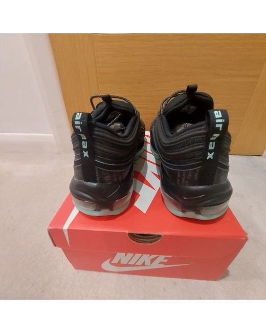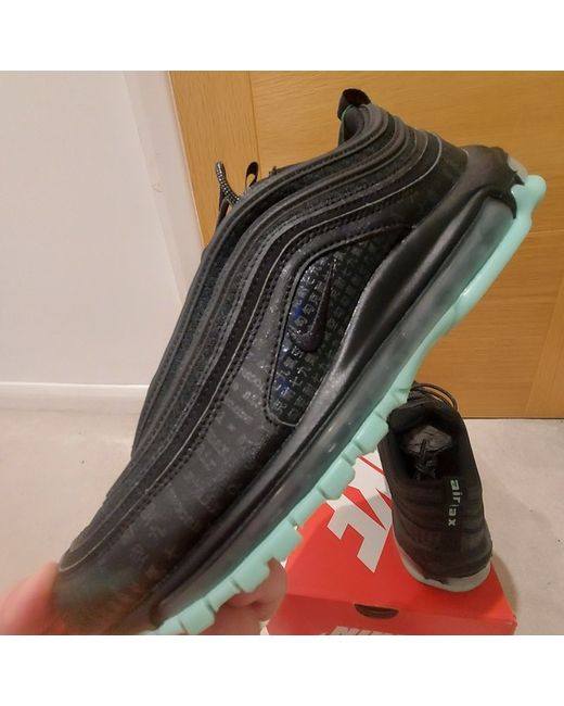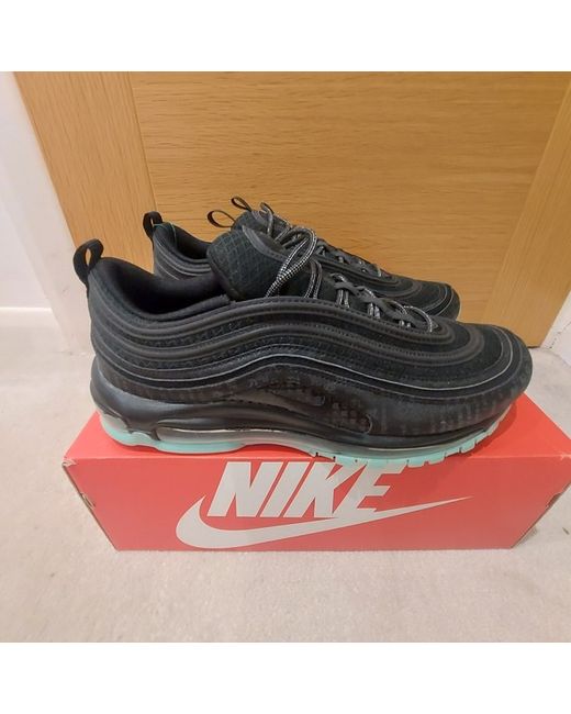 Elevate your sneaker game with the Nike Air Max 97 Matrix. This stylish and comfortable trainer boasts a sleek black design with hints of the iconic Matrix green. The shoe features a size 11 fit for men and a size 12 fit for US shoe sizes. The Nike Air Max 97 Matrix is part of the Nike Air product line and is perfect for anyone looking for a high-quality sneaker. With its comfortable fit and trendy design, this trainer is perfect for everyday wear. Don't miss out on the chance to own a pair of these stylish sneakers.