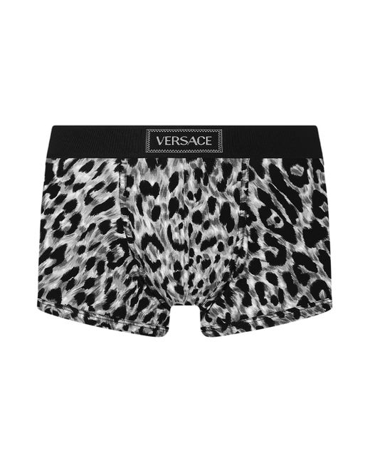 Carfted of leopard-print stretch jersey, these trunks are finished with a simple Versace logo tab on the front. Elasticized waistband Contour pouch Pulls on 95% cotton/5% elastane Trim: 82% polyester/9% elastane/9% nylon Machine wash Made in Italy ABOUT THE BRAND Founded in 1978, Versace is instantly recognizable by the signature Medusa head logo, chosen by founder Gianni Versace for its Greek symbolism. The Italian label is known for its luxe, bold clothing, sneakers, shoes and accessories-think gilding, oversized logos and punchy prints. Since taking over artistic direction, Gianni's sister Donatella Versace has maintained the brand's strong identity, with a renewed vision to give customers the ultimate freedom to express themselves. Men Accessories - Underwear > Versace > Saks Fifth Avenue. Versace. Color: Grey Black. Size: Small.