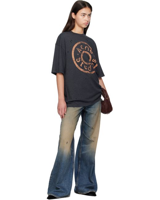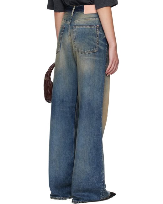 Non-stretch organic cotton denim jeans. · Distressing, whiskering, and discoloration throughout · Wide-leg · High-rise · Belt loops · Five-pocket styling · Button fly · Leather logo patch at back waistband · Contrast stitching in tan Supplier color: Dark blue