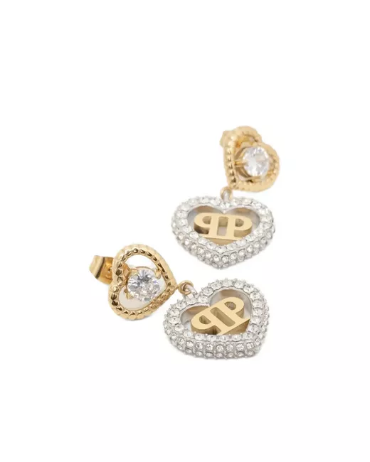 color oro decorazione in cristalli ciondolo a forma di cuore design pendente placca con logo chiusura a pressione Questi orecchini sono venduti in coppia.