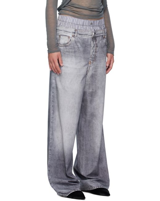 Cotton poplin trousers. · Trompe-l'oeil graphic printed throughout · Elasticized layered waistband · Two-pocket styling · Logo printed at back waistband Supplier color: Grey