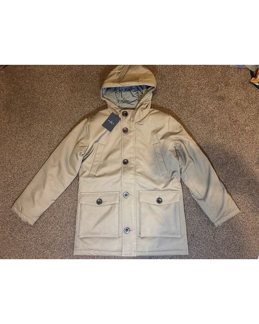 Hackett London - Heavyweight twill parka with bellow pocket detail for a classic utilitarian look - Features branded Hackett buttons, buckle tab on the hood, and sleeve badge - Designed for comfort, warmth, and timeless winter style £155 retail price