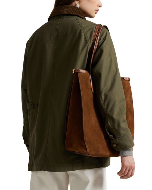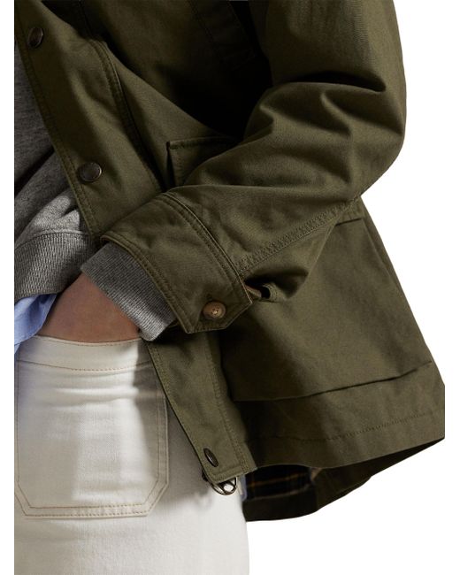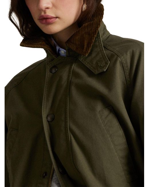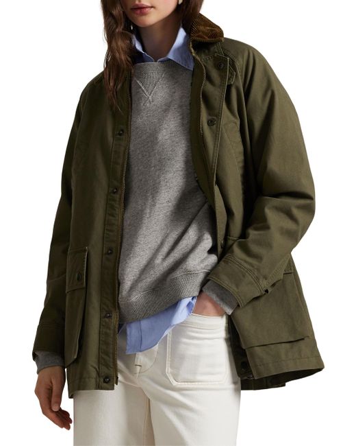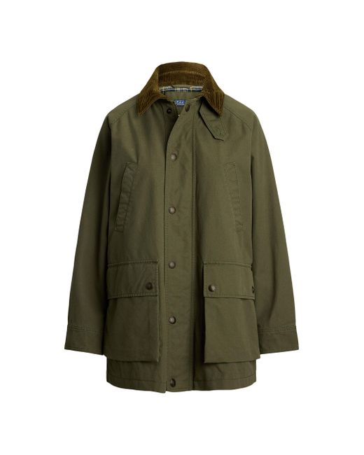 Crafted of medium-weight woven cotton, this workwear-inspired utility jacket from Polo Ralph Lauren has a relaxed shape outfitted with a corduroy collar, patch pockets, and signature engraved metal snaps. Point collar Long sleeves, adjustable button cuffs Chest welt pockets, side flap pockets Zipper closure, snap-button storm placket 100% cotton Body lining: 100% cotton Sleeve lining: 60% cupro/40% cotton Dry clean Imported SIZE & FIT About 43.5" from shoudler to hem Model measurements: 5'10" tall Model is wearing a US size Small ABOUT THE BRAND Synonymous with classic Americana style, Ralph Lauren started his collection of brands in 1967 with one item-the necktie-under the name Polo. Four years later, he debuted his first women's line, providing a segue to the debut of Ralph Lauren Collection. The epitome of polished dressing, the line's tailored coats, sweaters, trousers and more are both versatile and timeless. Modern Collections - Polo Ralph Lauren > Polo Ralph Lauren > Saks Fifth Avenue. Polo Ralph Lauren. Color: Olive. Size: Large.