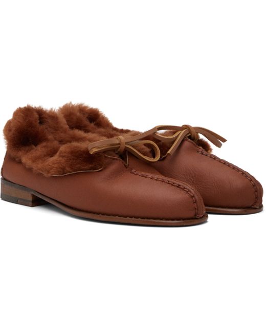 Shearling loafers. · Topstitching and pinched seam at vamp · Lace-up closure · Stacked leather heel with rubber injection · Leather sole Supplier color: Tan