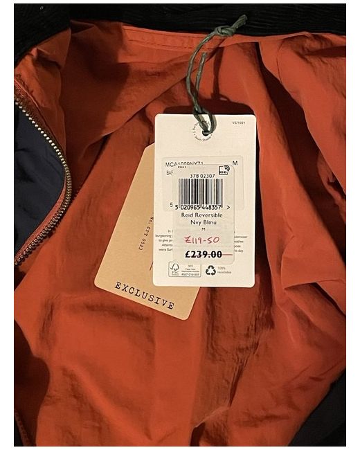 Barbour Reid Reversible Casual Jacket (size medium). This jacket is brand new and still has the tags on (as can be seen in the photos). The Barbour Men's Jacket in size medium is a stylish and practical outerwear option for casual occasions. Made with polyester outer shell material and quilted accents, this blue jacket features a zip closure and is machine washable for easy care. With a regular fit and varsity jacket style, this outdoor-themed piece is perfect for autumn walks and outdoor activities. Made in the United Kingdom, this jacket embodies the classic Barbour brand while offering modern functionality and design. Let me know if you have any questions :)