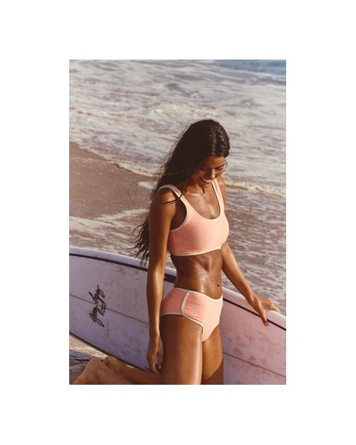 Cut in a classic scoop neck style with a light stripe fabrication and cool contrast trim, this swim top is an instant classic. **Fit:** Fitted silhouette; scoop neck + back. **Features:** Pull-on style; water-ready striped fabrication; scoop neck + back; semi-thick straps; contrast trim. **Why We ❤ It:** So easy and simple, this style is totally surf-ready. Poolside Paradiso Cropped Surf Top at Free People in Mimosa, Size: Small