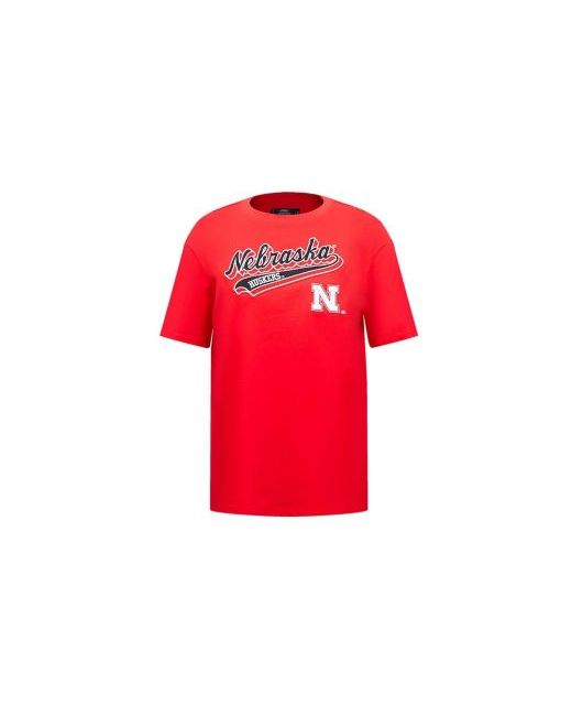 The Pro Standard Women's Scarlet Nebraska Huskers Script Tail Oversized Boyfriend T-shirt is the perfect way to show unwavering support for the Nebraska Huskers. With embroidered graphics and felt details, this oversized boyfriend T-shirt is sure to turn heads. The crew neck and screen-printed graphics add a stylish touch, while the cotton material ensures all-day comfort. Whether cheering on the Huskers at the game or showcasing team spirit around town, this T-shirt is a must-have for any fan.