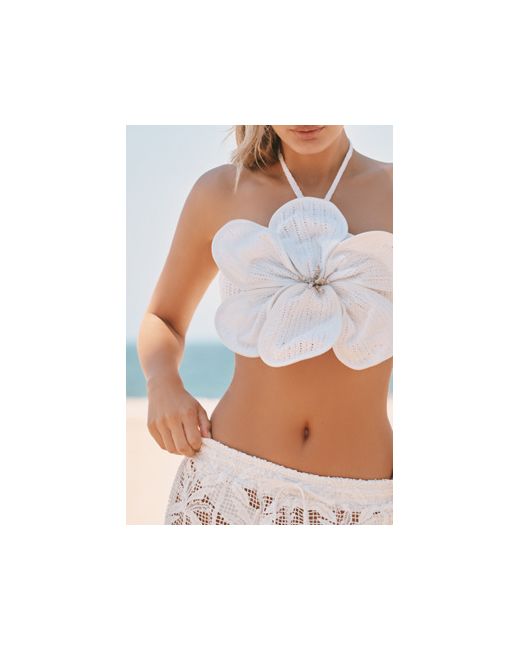 By BLITHE 100% Cotton Center back tie Machine wash Imported 3D Flower Top by BLITHE in White, Women's Size: XS, Cotton at Anthropologie