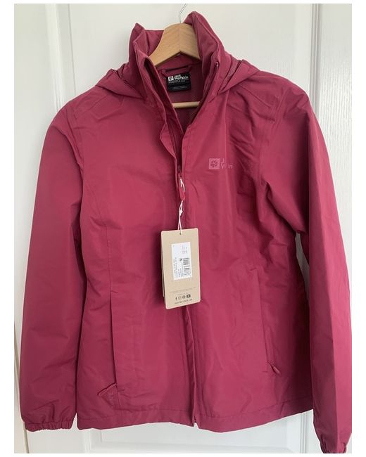 Brand new womenās pink, Jack Wolfskin waterproof/wind proof and breathable lightweight jacket. With tags and in original packaging. RRP: Ā£100
