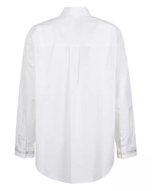 bianco maniche lunghe chiusura a bottoni polsini con logo colletto a punta