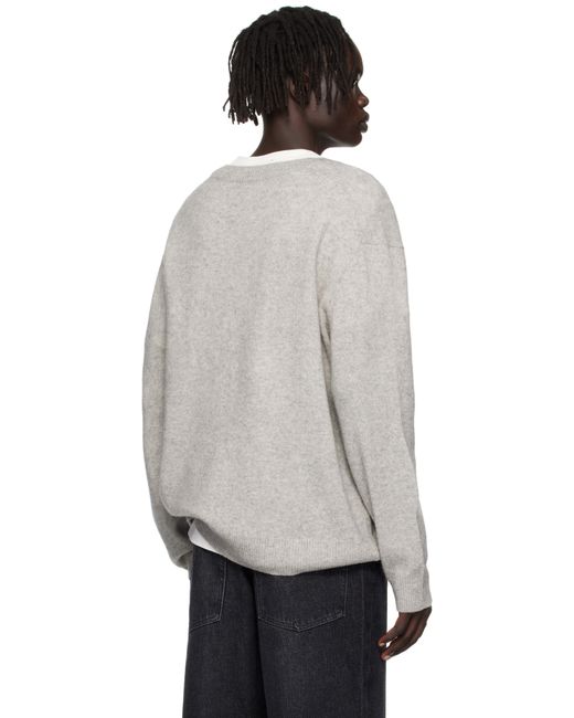 Brushed knit yak wool sweater. · Rib-nit V-neck, hem, and cuffs · Dropped shoulders Supplier color: Gris claire chine