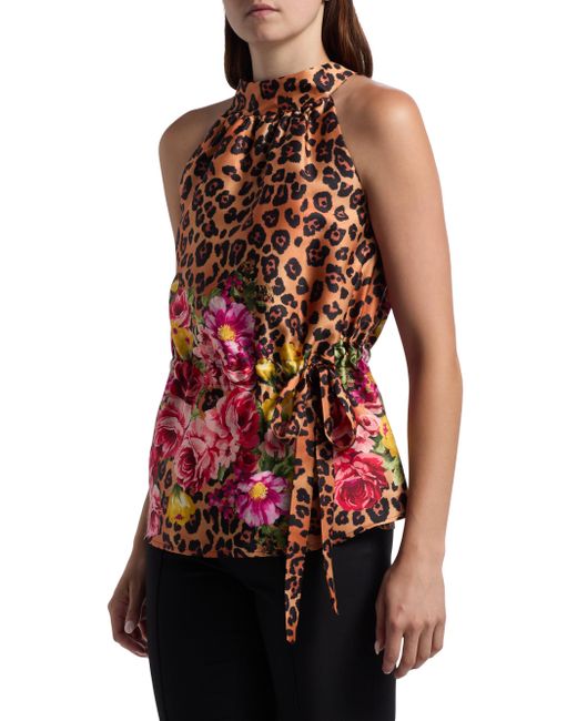 This halterneck top from If Only Studio features a leopard and floral print and is styled with a waist tie. Halterneck Sleeveless Waist tie Back tie closure 100% polyester Dry clean Imported SIZE & FIT About 23.5" from shoulder to hem Model measurements: 5'10" tall Model is wearing a US size Small. Contemporary Sportswear - Private Label Contempora > If Only Studio > Saks Fifth Avenue. If Only Studio. Color: Brown Multi. Size: XS.
