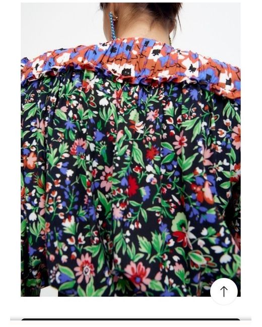 ZARA Shoulder Pad Patchwork Floral Print Top Blouse Size XXL.