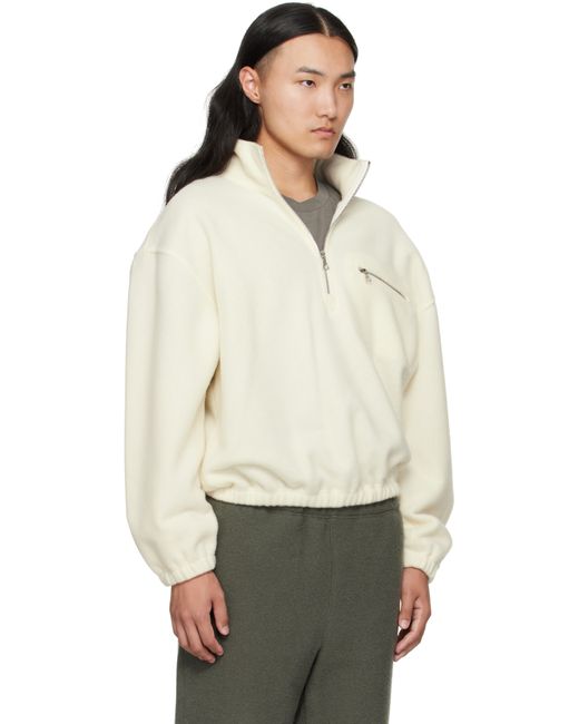 Lightweight brushed virgin wool fleece sweater. · Stand collar · Half-zip closure · Zip pocket at chest · Elasticized hem and cuffs · Dropped shoulders · Locker loop at back yoke Supplier color: White