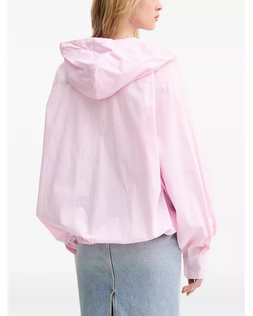pink gingham check pattern kangaroo pocket drawstring hood button placket long sleeves