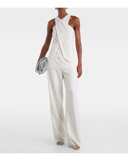 Material: 100% virgin wool. Care instructions: dry clean. Made in Italy. Designer color name: Bianco. Item color: white. Material II: 100% silk. Lining: 85% acetate, 10% silk, 5% polyamide. Lining II: 100% silk. Closure: buttoned front, zipped back. Attached belt. Pockets: welt pockets. Fully lined.