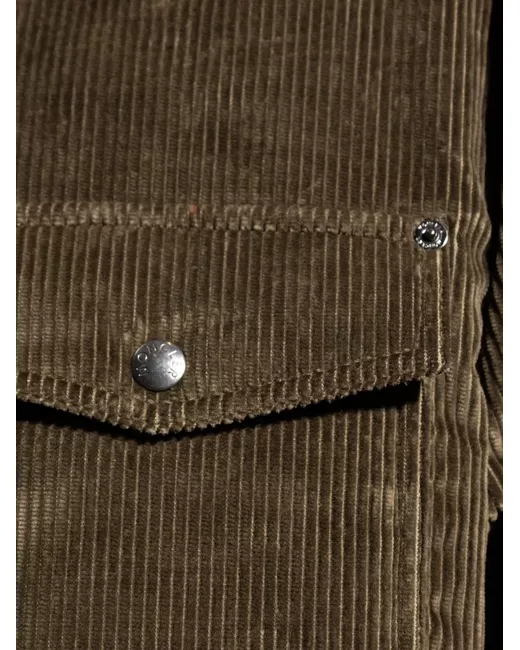 dark brown corduroy texture button fastening flap pockets long sleeves straight hem