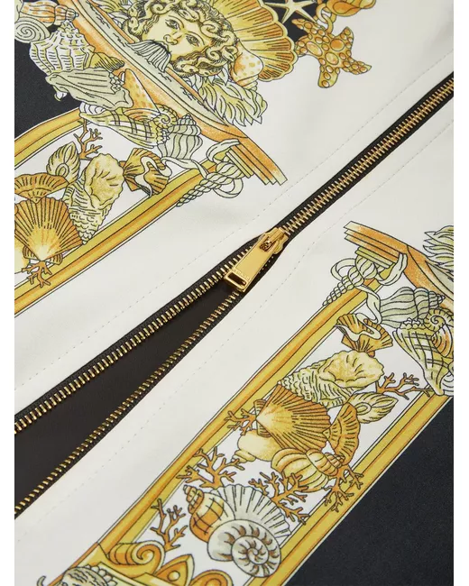 bianco opaco sfondo nero motivo cavalluccio marino dettagli in oro design d'ispirazione barocca chiusura con zip