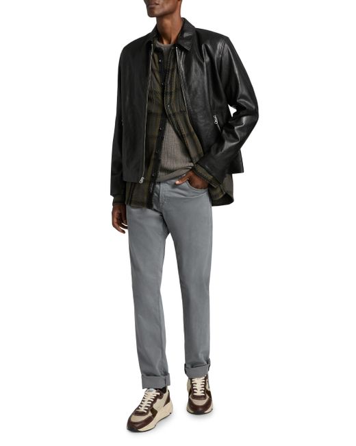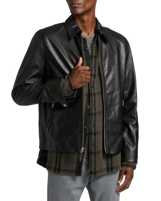 This Melrose jacket from rag & bone is crafted of leather and features a classic moto-inspired design with a spread collar, zip pockets, and snap-button cuffs. Spread collar Long sleeves, snap-button cuffs Side zip pockets Front zip closure 100% leather Dry clean by leather specialist Imported SIZE & FIT About 26" from shoulder to hem Model measurements: 6'2" tall, 40" chest, 31" waist Model is wearing a US size Medium ABOUT THE BRAND In 2002, rag & bone founder Marcus Wainwright combined his British heritage with a downtown-New York aesthetic to set the tone for the label. At the heart of the edgy-yet-laid-back brand is its focus on quality craftsmanship and attention to detail. The epitome of cool, off-duty style, it's no wonder the signature denim and easy knits are favored by many. Mens Denim & Contemp - Contemp Denim And Bottom > Rag & Bone > Saks Fifth Avenue. rag & bone. Color: Black. Size: Small.