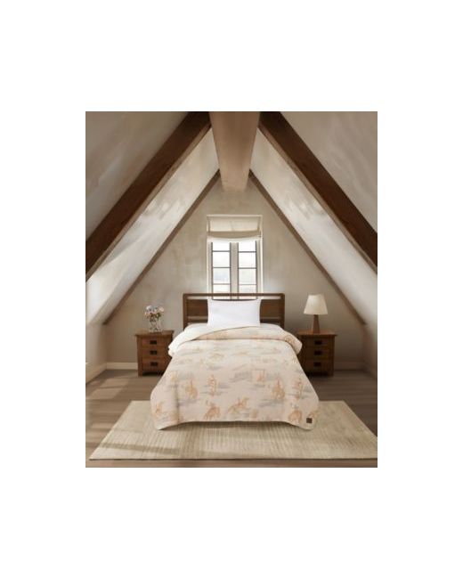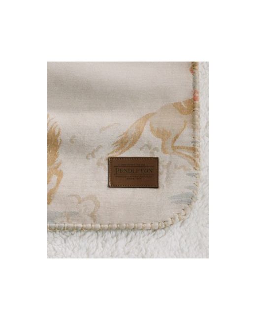 The Pendleton Rodeo Landscape throw is a vibrant and playful piece that captures the spirit of the wild west. Featuring a novelty cowboy pattern, this throw showcases dynamic scenes of cowboys, horses, and rodeo action, making it a fun statement piece for any room.