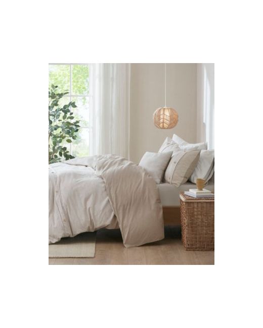This Gots certified organic cotton comforter cover features button placket details on the soft fabric. A removable insert is included and secured by corner ties and a button closure to make washing easier. Antimicrobial treatment provides built-in freshness protection, reducing the growth of odor.