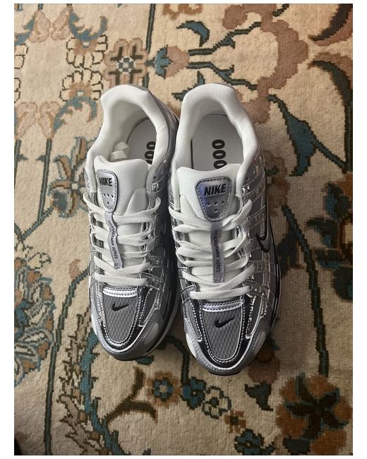 The Nike P-6000 Metallic Silver sneakers are a stylish and comfortable choice for casual wear. Featuring a lace-up closure and a low-top design, these trainers offer a modern look with a touch of silver flair. Made with mesh upper material and a rubber outsole, they are perfect for gym and training activities. The Nike P-6000 model offers a standard shoe width and is designed for overpronation, making them suitable for a range of sports-themed occasions.
