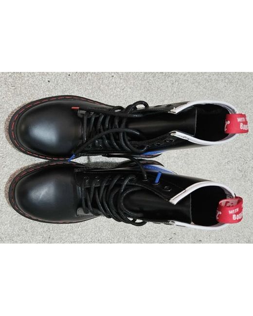 The Dr Martens 1460 Ankle Boots in The Who Size 8 are a stylish and classic choice for men. Crafted from black leather with a round toe and lace-up closure, these boots are perfect for casual occasions in the winter season. The iconic Dr. Martens brand, along with the ankle boot style and rubber outsole, ensures both durability and a fashionable look. These boots are a must-have for any wardrobe, offering both comfort and a touch of edgy style.