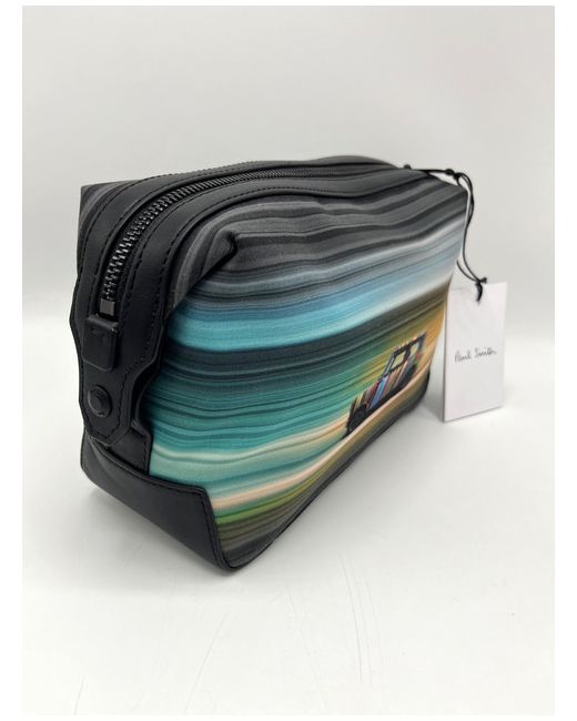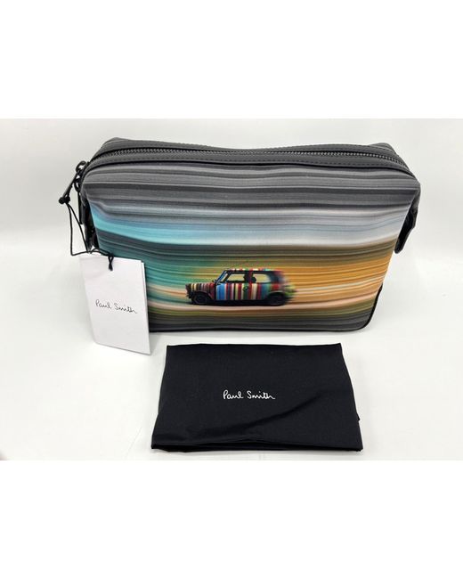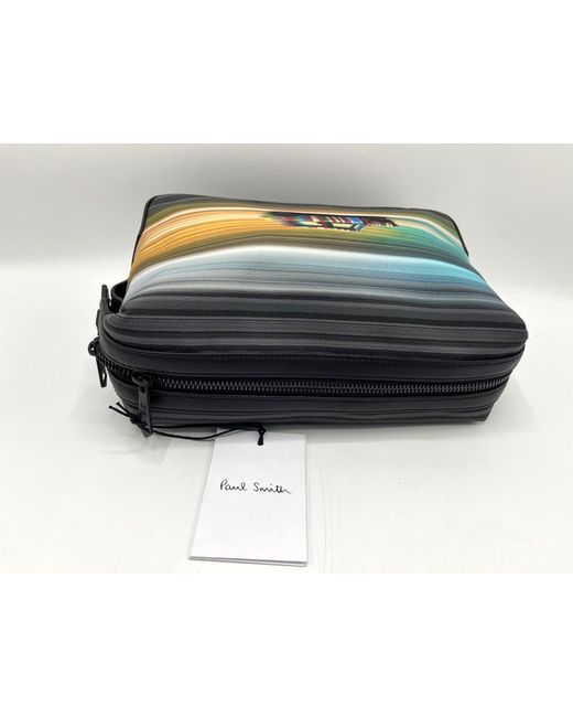 Paul Smith 'Mini Blur' Signature Stripe. Mini Blur on location print with black trims. Paul Smith gold foil signature square badge. Wash Bag with dust bag. with dust bag. black coloured signature tie zip.