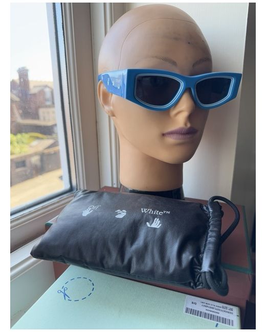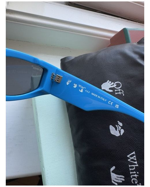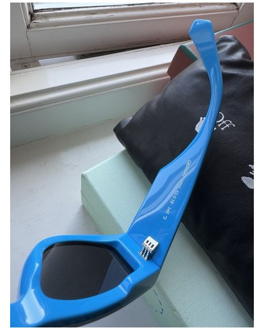 The Off-White Sunglasses are a stylish and high-quality accessory suitable for both men and women. Made in Italy with tinted black lenses, these square sunglasses offer UV400 protection to keep your eyes safe from the sun's rays. The frame is crafted from durable acetate material in a vibrant blue colour, adding a fashionable touch to your outfit. Perfect for everyday wear or special occasions, these sunglasses are a must-have for your summer wardrobe.