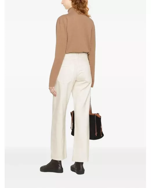 camel high neck long sleeves straight hem ribbed details