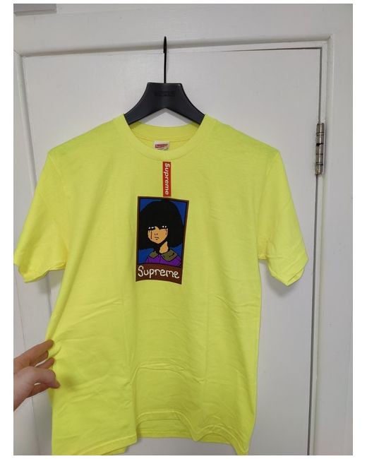 Emo Tee dropped few days ago Fluorescent Yellow in hand MEDIUM SIZE All cotton classic Supreme t- shirt with printed graphic on front.