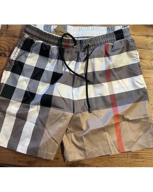 These Burberry Beige Swim Trunks in size XL are new in bag and feature the iconic check pattern with Nova character. The swim shorts are machine washable and have a designer theme, making them perfect for those looking for a stylish swim bottom. Made by Burberry, these swim trunks are a fashionable choice for men wanting to make a statement at the beach or pool.
