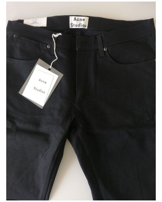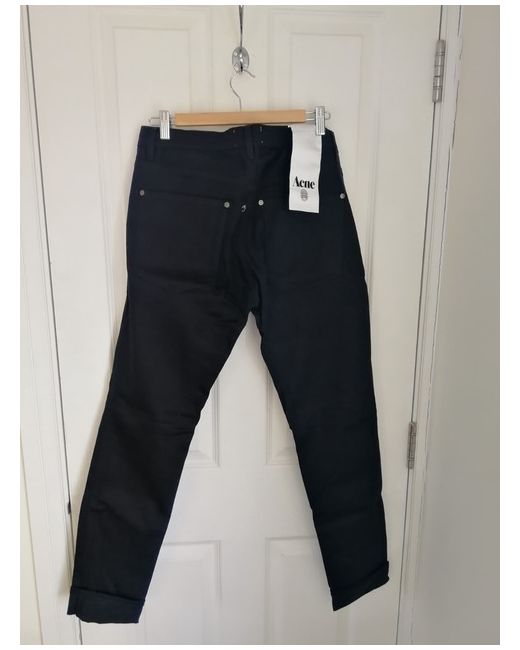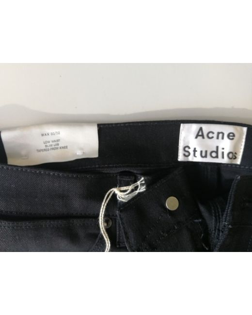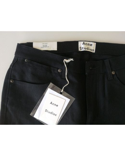 The Acne Studios Max is a slim cut jean with a straight narrow leg, sitting just below the waist and a tapered ankle. Made from black denim, the Max Cash Jeans feature classic Acne detailing such as flat rivets on the back pockets, narrow stitched seams, three needle stitching on inner leg and a hidden coin pocket.