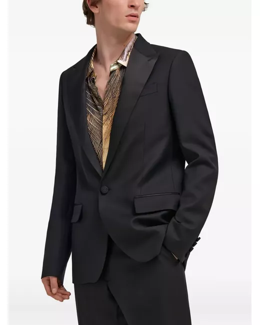 black satin lapel single button fastening welt pockets padded shoulders long sleeves