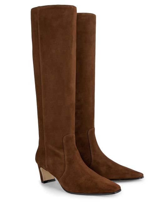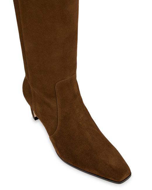 Made in Spain, Stuart Weitzman's Stassi boots are crafted of suede and feature a side zip closure. Square toe Side zip closure Suede upper Leather lining Leather sole Made in Spain SIZE Heel: about 2" (50mm) ABOUT THE BRAND Designer Stuart Weitzman started his career designing for his father's shoe company, before launching his own brand in 1986. Known for his glamorous pumps and over-the-knee boots, Weitzman has also incorporated unique materials in his designs, ranging from Lucite and wallpaper to cork, vinyl and even gold. Today, the label continues to create classic, feminine silhouettes that balance both comfort and style. Women's Shoes - Stuart Weitzman Wmn Shoe > Stuart Weitzman > Saks Fifth Avenue. Stuart Weitzman. Color: Deep Coffee. Size: 5.