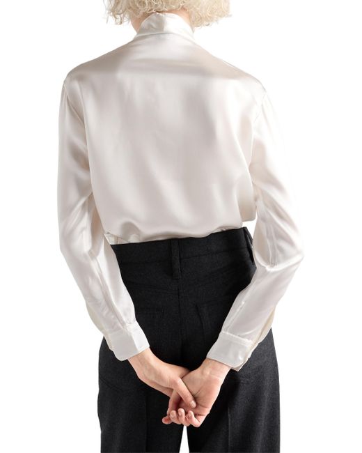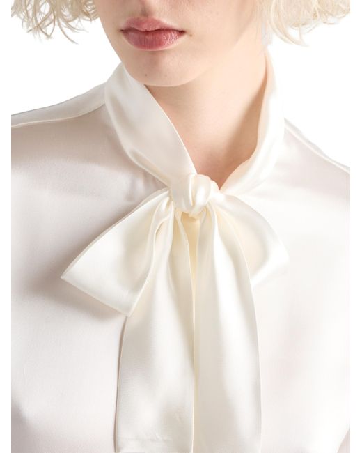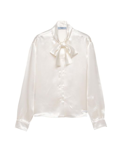 Straight fit Unlined Scarf collar Front button closure Sleeves with shirt cuffs Sartorial logo label Straight hem Imported 54% acetate,46% viscose. Lsd Rtw - Prada Rtw > Prada > Saks Fifth Avenue. Prada. Color: White. Size: 4.