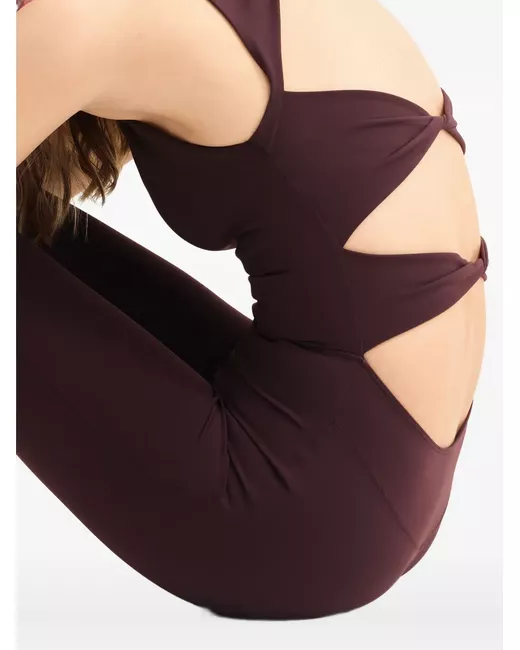 marrone design a rete scollo ampio coppe rimovibili senza maniche schiena scoperta design a incrocio ricamo con logo sul retro