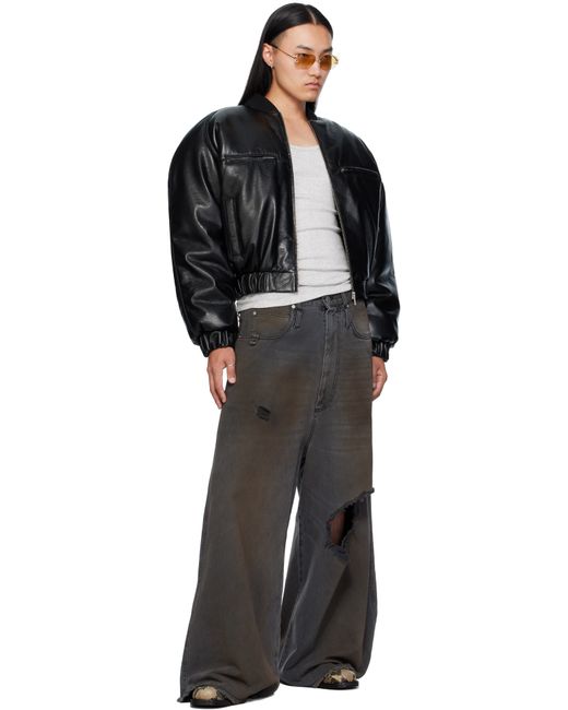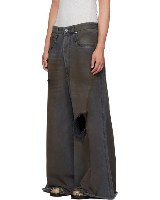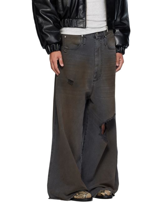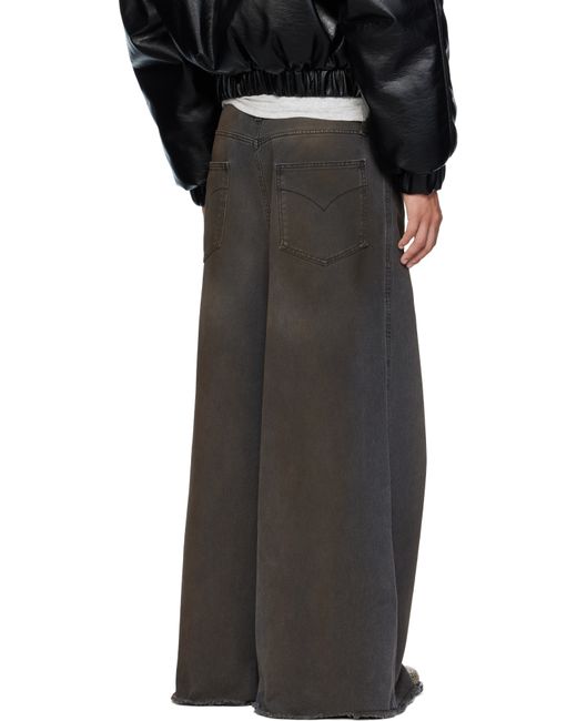 Non-stretch denim jeans. · Wide-leg · Fading, whiskering, smudging, and distressing throughout · Belt loops · Five-pocket styling · Zip fly · Concealed drawstring at waistband · Hammer loop at front pocket · Raw edge at cuffs · Logo patch at back waistband · Logo-engraved silver-tone hardware Supplier color: Dirty outcast grey