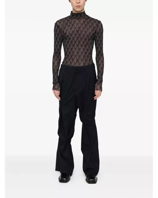 dark blue concealed front button, hook and zip fastening two side slash pockets rear flap pocket