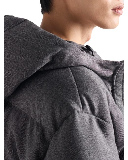 Oversized fit Hooded collar Straight sleeve Zipper closure Welt zipper pockets Elasticized cuff Drop shoulder Straight hem Elasticized drawstring Lined and padded with goose down Wool triangle logo and sartorial logo label Imported 100% Fleece wool. Lsd Rtw - Prada Rtw > Prada > Saks Fifth Avenue. Prada. Color: Grey. Size: Medium.