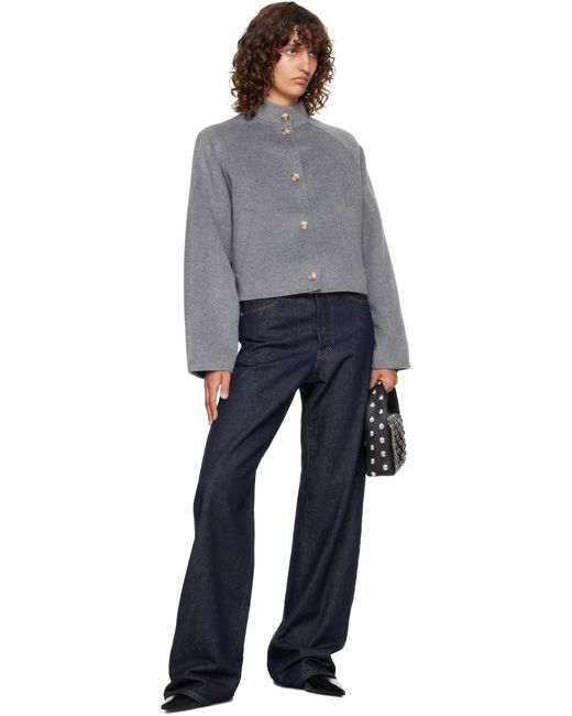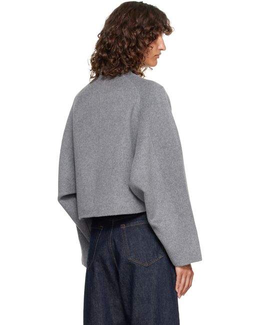 Wool- and cashmere-blend melton jacket. · OEKO-TEX® STANDARD 100-certified · Stand collar · Button closure · Welt pockets at waist · Cropped hem · Raglan sleeves · Unlined Supplier color: Grey melange