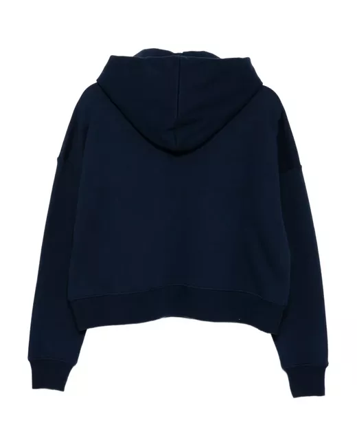 navy blue slouchy hood long sleeves ribbed cuffs and hem