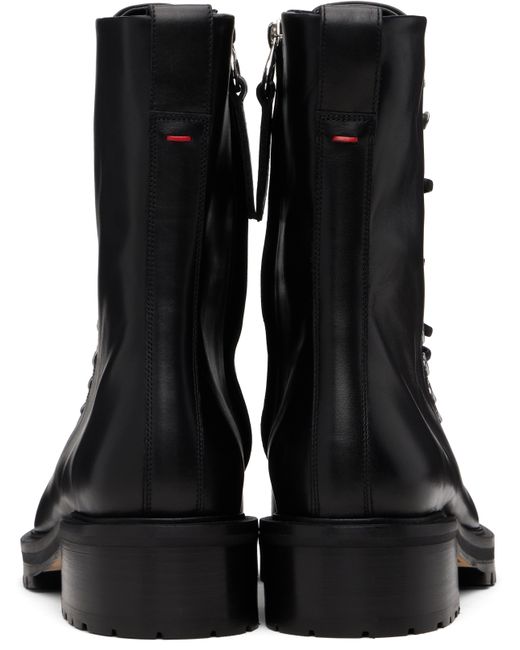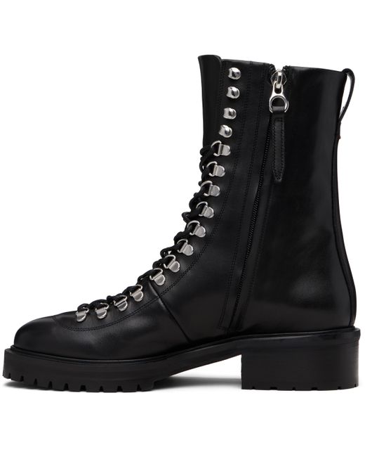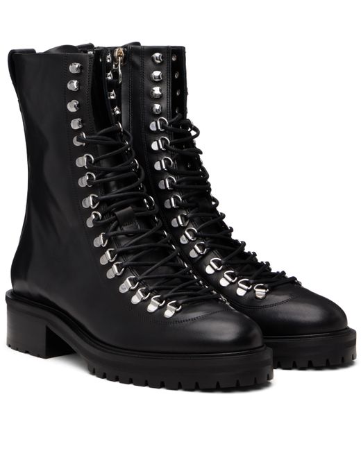 Ankle-high buffed calfskin boots. · Lace-up closure · Zip closure at inner side · Pull-loop and red stitch at heel collar · Buffed leather lining · Stacked leather and rubber midsole and block heel · Treaded rubber sole · Silver-tone hardware · Heel: H1.5 Supplier color: Black