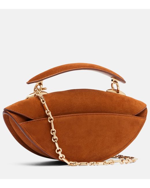 Materiale: pelle di vitello (suede). Rivestimento: pelle di vitello. Made in Italy. Colore del designer: Tan. Colore dell'articolo: marrone. Inserto: pelle di vitello. Colore del metallo: oro. Manico, Tracolla rimovibile a catena con pelle. Interno: scomparto singolo, scomparto porta tessere. Chiusura: chiusura magnetica. Pelle.