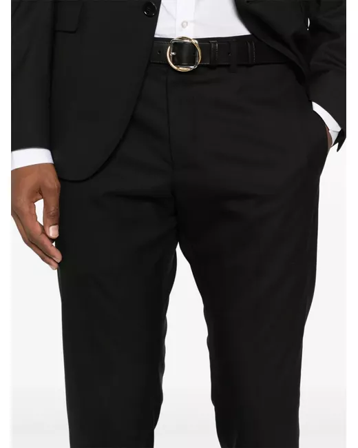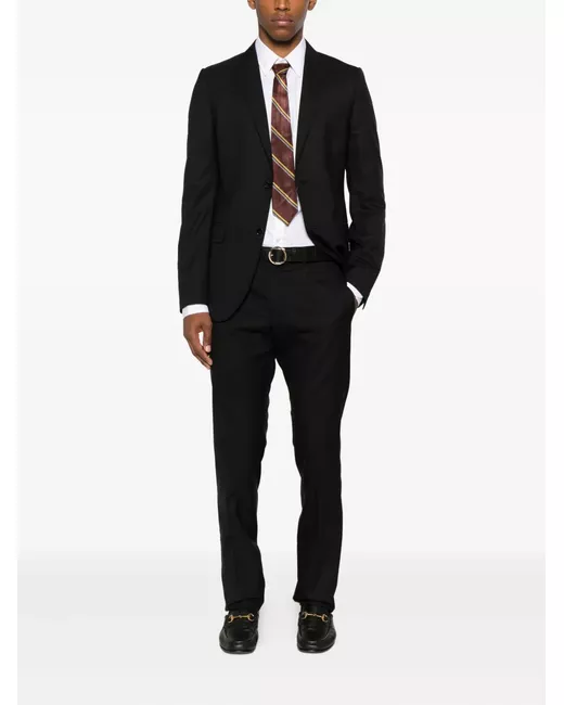 black wool two-button fastening notched lapel straight trousers flat front trousers