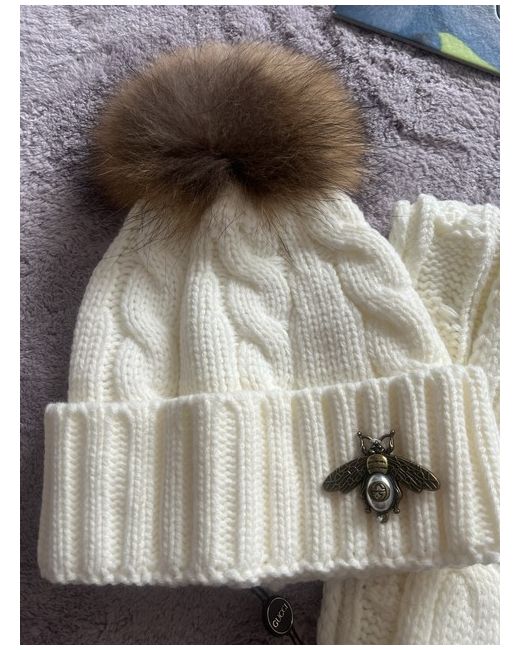 The Gucci Hat and Scarf Set in ivory is a luxurious winter accessory for women. The set includes a stylish beanie hat in size M, crafted from knit fabric. The iconic Gucci brand ensures high quality and fashion-forward design, making this set a chic addition to any winter outfit. Perfect for staying warm and stylish during the colder months, this set exudes sophistication and elegance.