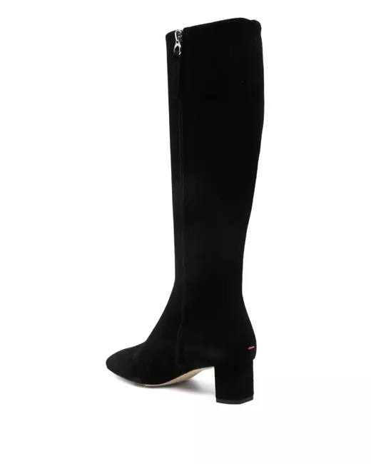 black suede upper block heel knee-high shaft square toe side zip fastening