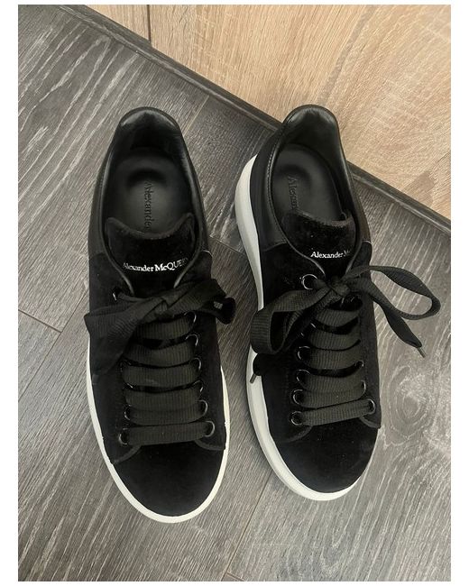 The Alexander McQueen Women's Oversized Trainers in Size 5 are a stylish and comfortable option for casual wear. Featuring a lace-up closure, low-top shoe shaft style, and breathable features, these white trainers with black accents are perfect for autumn, summer, or spring. Made from velvet fabric with a leather lining and insole, these sneakers showcase the brand's iconic style with a touch of 80s and 90s nostalgia. Crafted in Italy in 2019, these trainers are a fashionable choice for women looking for a statement piece in their wardrobe.