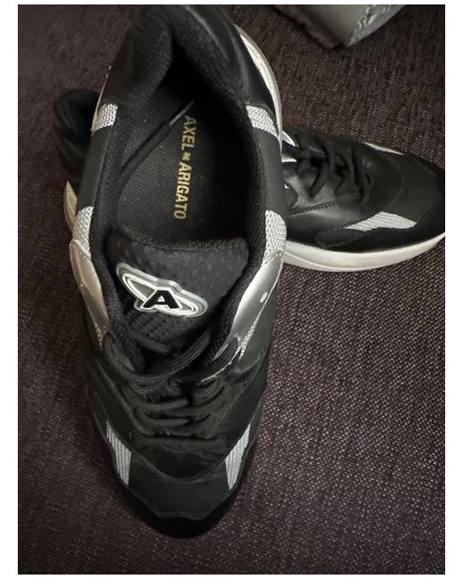 The Axel Arigato Trainers in black, size 8 are a stylish and versatile choice for women. Made in Portugal with leather uppers and rubber outsoles, these low-top lace-up sneakers are perfect for casual occasions in the spring season. The standard shoe width ensures a comfortable fit, while the brand's signature sleek design adds a touch of sophistication to any outfit. Perfect for adding a chic and contemporary touch to your wardrobe, these trainers are a must-have for fashion-forward individuals looking for a blend of style and comfort.