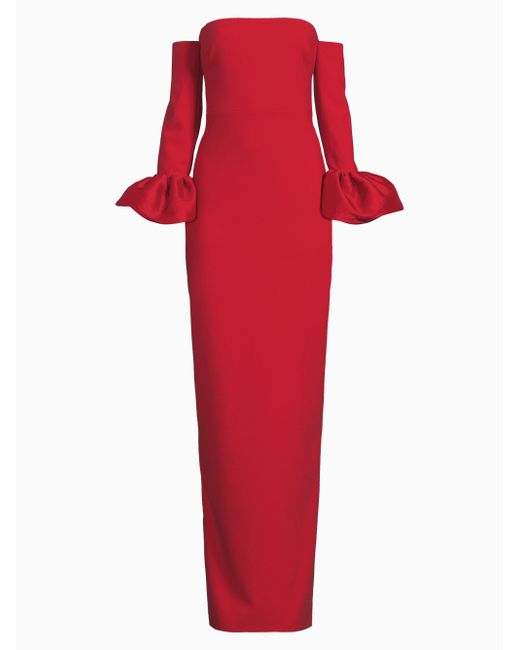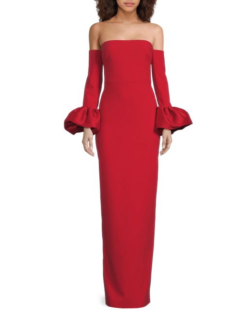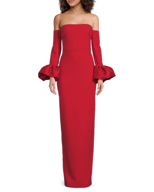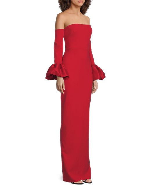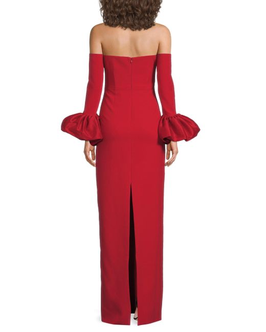 Likely's Kiva gown is cut for a fitted column silhouette. The off-the-shoulder long sleeves feature flared cuffs for a dramatic finish. Strapless Off-the-shoulder long sleeves, flared cuffs Concealed back zip closure 67% rayon/27% rayon/6% spandex Dry clean Imported SIZE & FIT Model measurements: 5'10" tall Model is wearing a US size 4. Dress Collections - Contemporary Evening > Likely > Saks Fifth Avenue. Likely. Color: Scarlet. Size: 0.